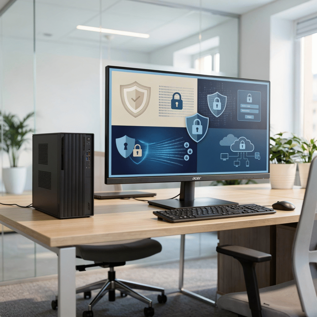 Mantenha sua operação protegida e simplifique a gestão de TI em ambientes de trabalho híbrido com as tecnologias integradas ao Veriton Vero Tower.